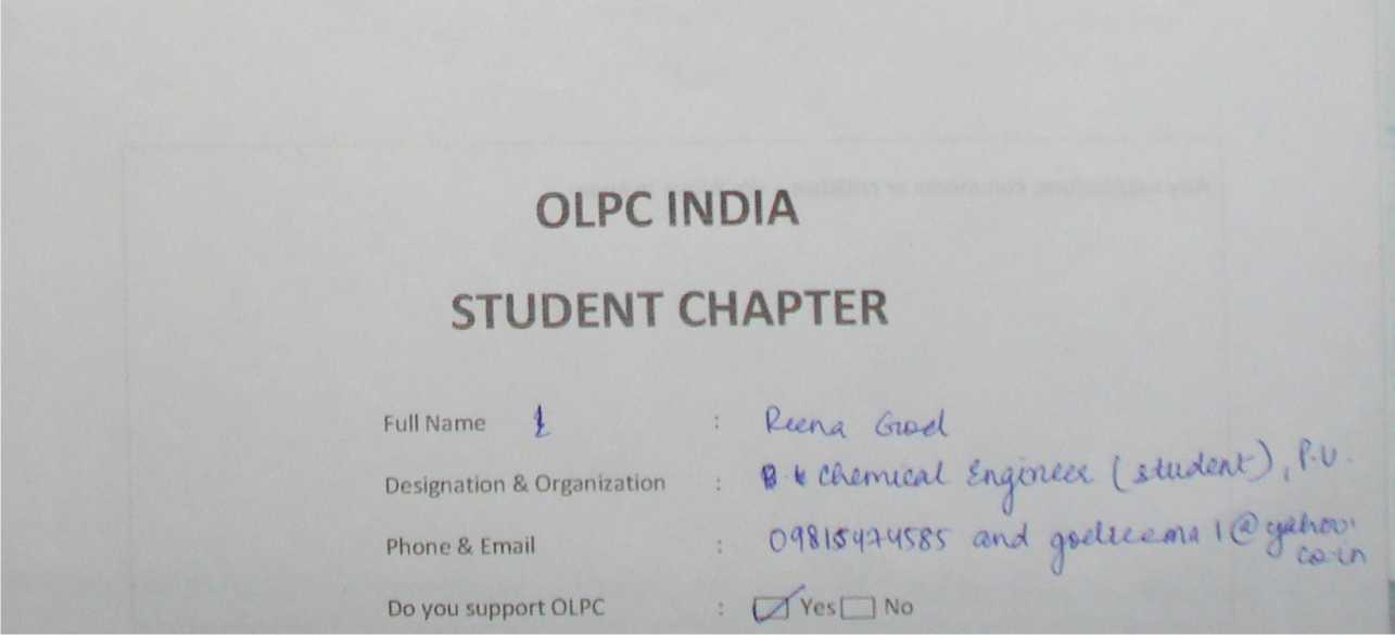 Membership form of OLPC India Student Chapter