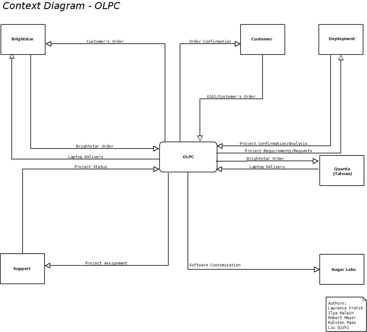 | current | 13:43, 15 May 2009 | Error creating thumbnail: Unable to save thumbnail to destination | 1,219 × 1,102 (26 KB) | Imported>Sverma | San Francisco State University - Information Systems Analysis and Design Project - OLPC level context map {{CC-BY-SA}} (Creative Commons Share-Alike) ) |