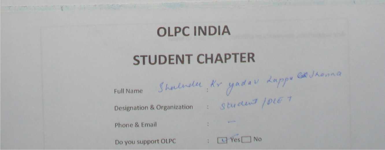 Membership form of OLPC India Student Chapter