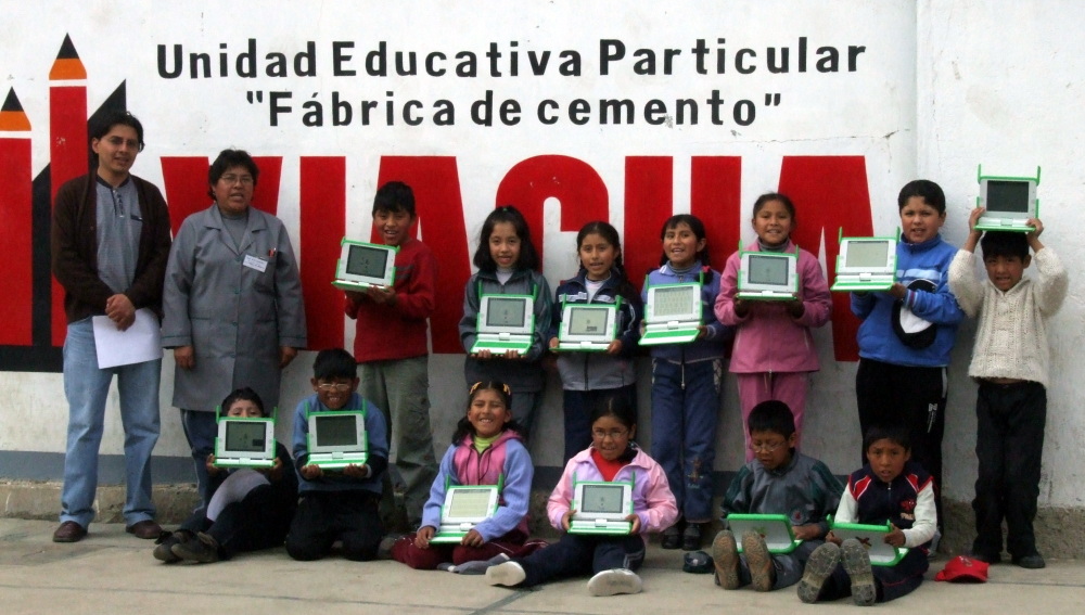 Children of 3rd Grade of the school that Soboce funds, showing their XOs
