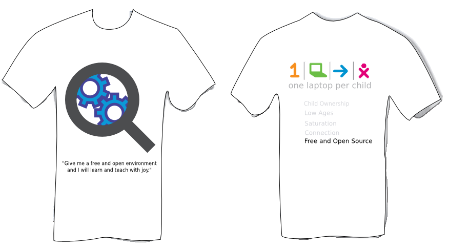 Tentative t-shirt design showing of one core principle of OLPC: Free and Open Source