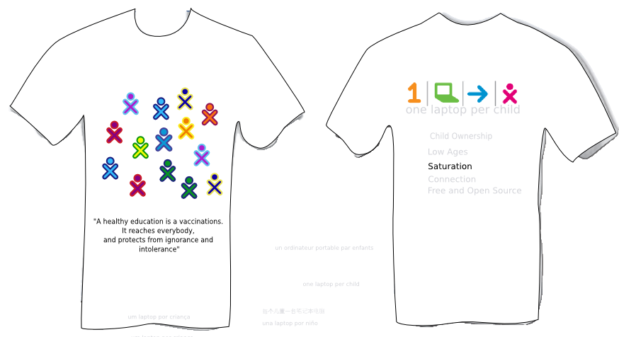 Tentative t-shirt design for OLPC core principle "saturation"