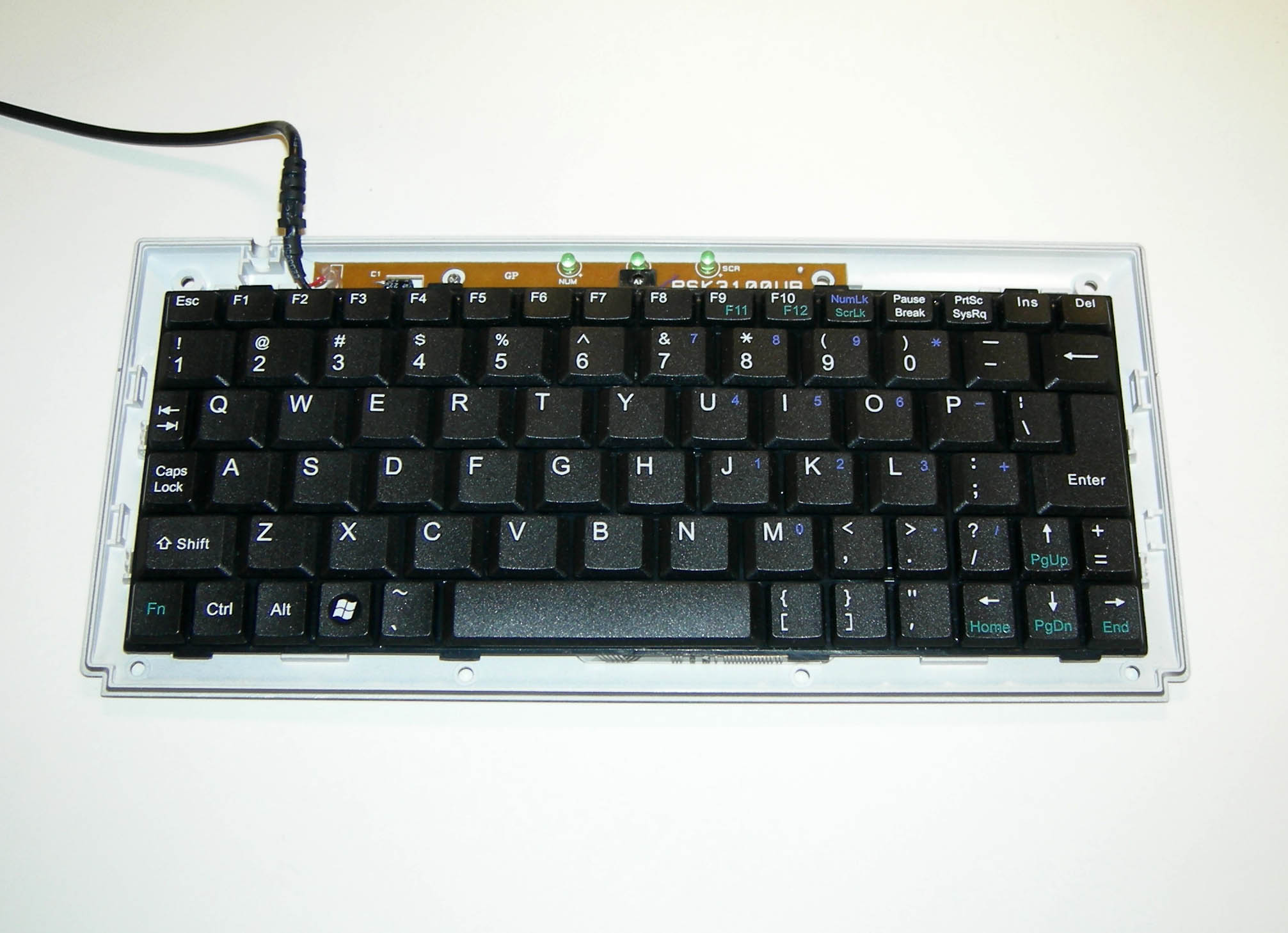Inside of USB Keyboard. The USB keyboard controller is visible behind the keyboard in the upper left.