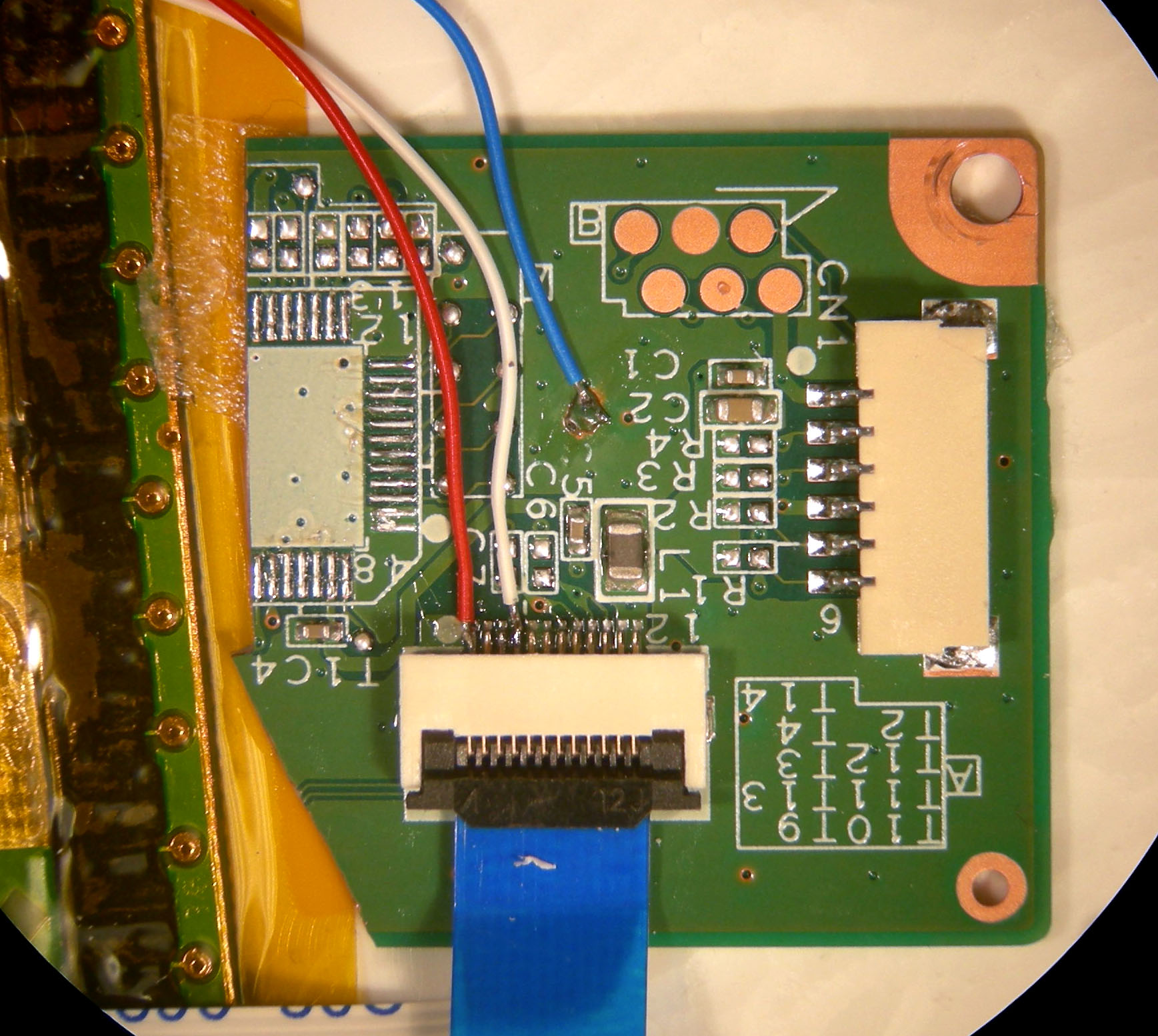 Connections to connector board cut from the XO keyboard controller