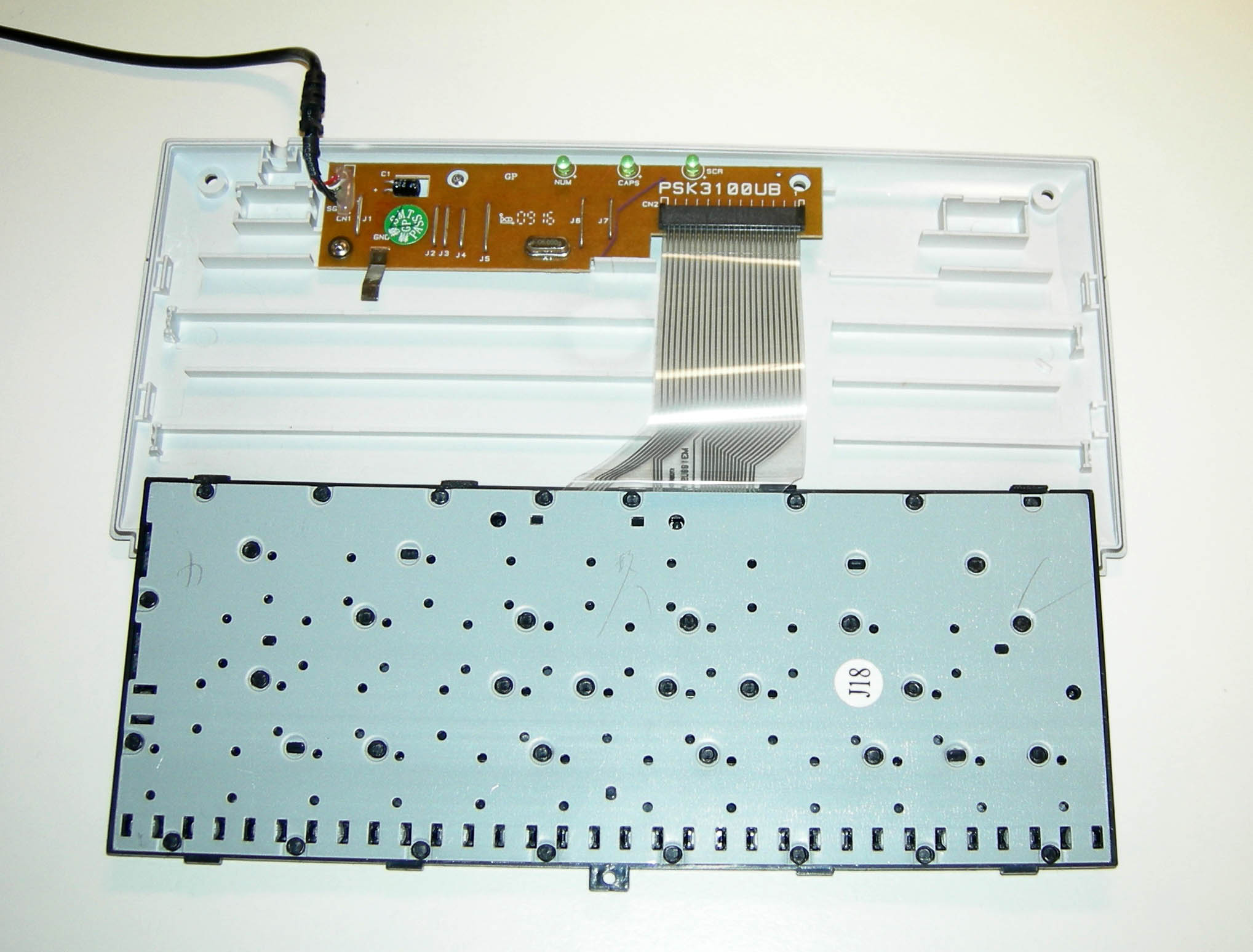 Inside of USB Keyboard, showing keyboard controller and keyboard interconnection