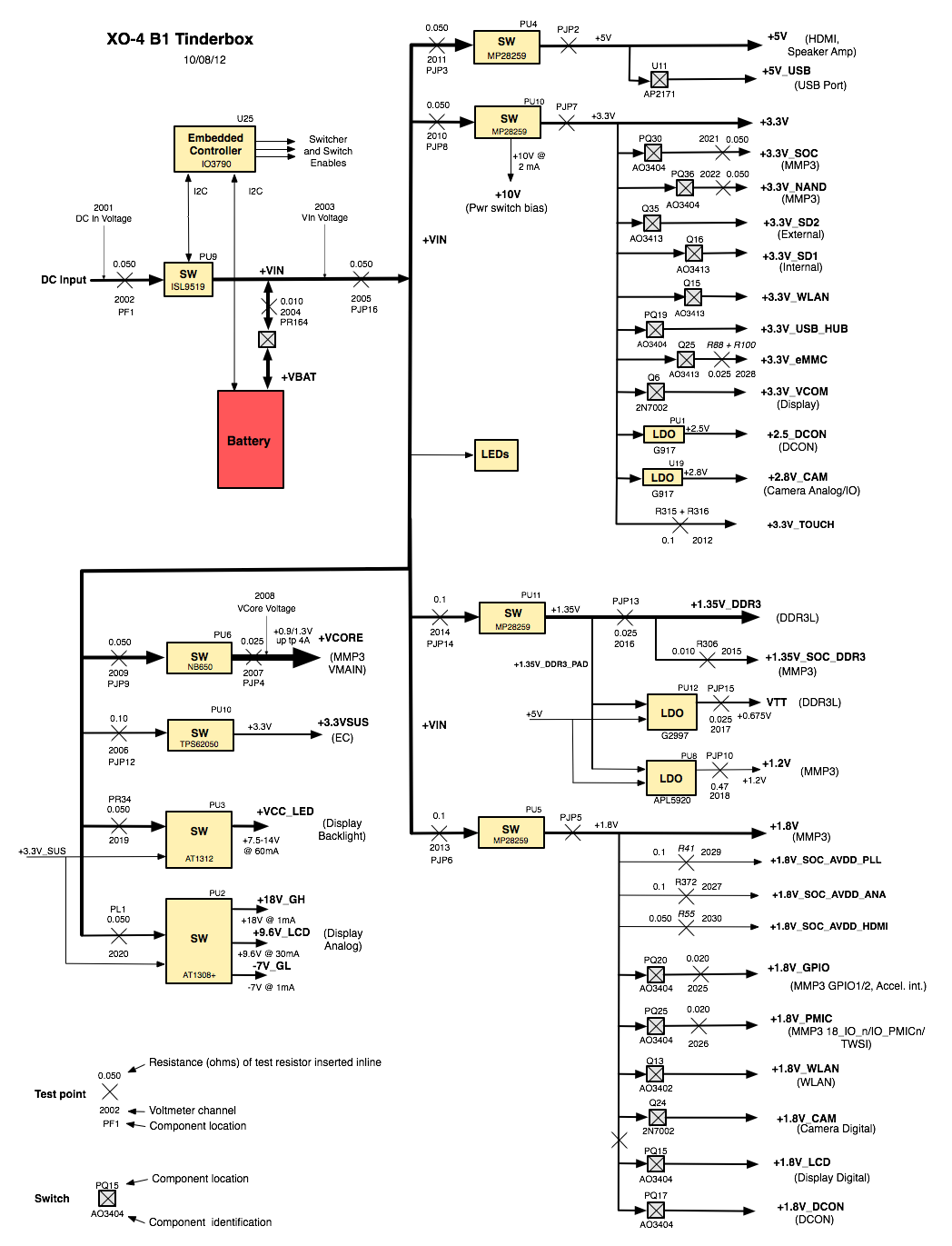| 21:53, 1 October 2012 | (49 KB) | Imported>Wad | Power distribution diagram for XO-4 B1 version motherboard, including Tinderbox power measurement points. PNG version Category:XO-4 Category:Hardware {{CC-BY-SA}} |