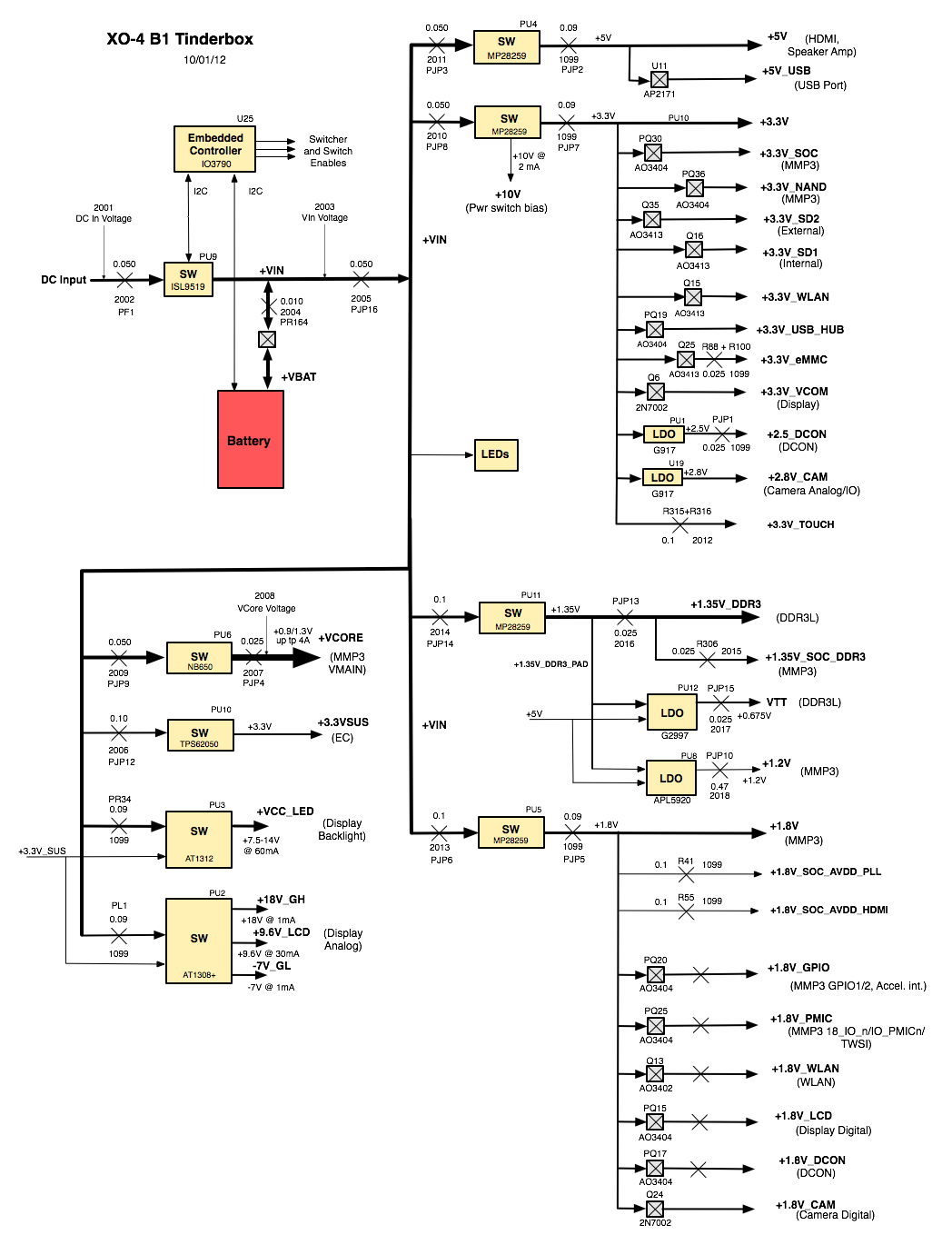 | 21:52, 1 October 2012 | Error creating thumbnail: Unable to save thumbnail to destination | 1,048 × 1,370 (188 KB) | Imported>Wad | Power distribution diagram for XO-4 B1 version motherboard, including Tinderbox power measurement points. PDF version Category:XO-4 Category:Hardware {{CC-BY-SA}} |
