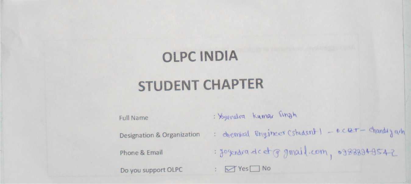 Membership form of OLPC India Student Chapter
