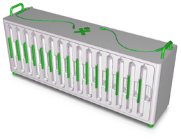 Classroom situations, especially those without "grid" power, are challenging for powering laptops. One of the solutions is a multiple battery charger, which allows a number of laptop batteries to be charged in a small cabinet taking AC or 12VDC input.