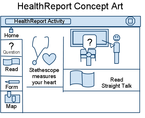 What the project needs at this point is to determine where HealthReport will first be deployed, and what information they will be collecting.