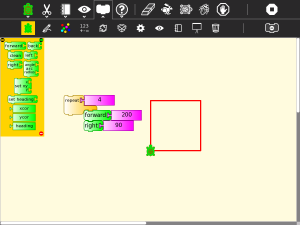Turtle Art, also known as Turtle Blocks, is an activity with a Logo-inspired graphical "turtle" that draws colorful art based on snap-together visual programming elements. Its "low floor" provides an easy entry point for beginners. It also has "high ceiling" programming, graphics, mathematics, and Computer Science features which will challenge the more adventurous student.