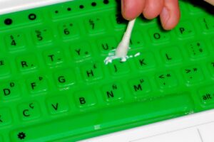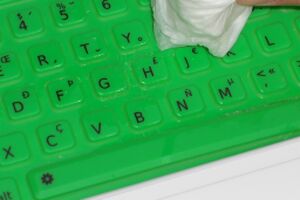 While this may seem easier than removing the keyboard, you must work very carefully to not allow silicone to get under the green silicone keypad.