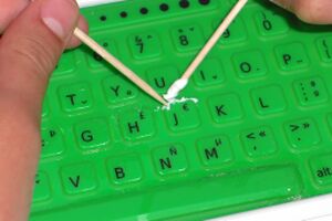 Apply silicone to one edge of the key and carefully clean it. If you try to do the entire key at once, it will be difficult to keep it in place while working.