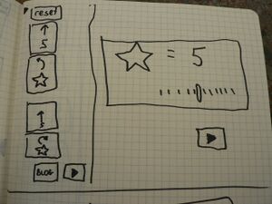 - when setting a literal value (eg left "90 degrees") there might be a slider as well as a big Question Mark icon, which, when clicked, means the value will be requested each time the turtle-program is run. This variable will be given its own icon (a star, say) and it can be used copied to elsewhere in the program. This is also the start of writing subroutines.