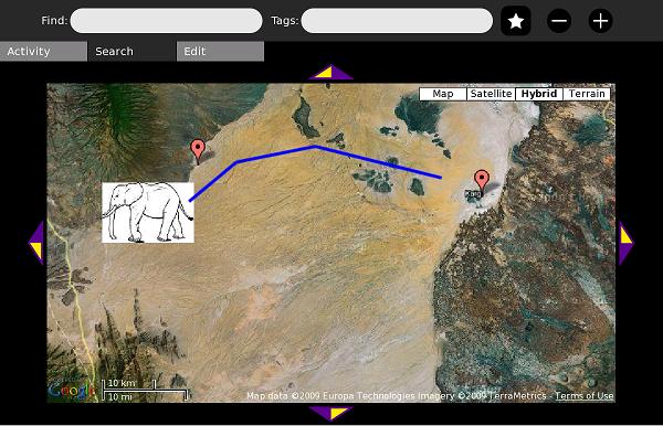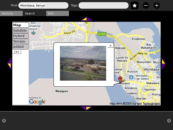 La actividad usa PyGTK. Filas de Javascript (y prototype.js) communicar con Static Maps API de Google.