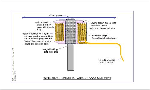 - 3 Find a stretched steel wire -- e.g. a guitar (I happened to have a dulcimer. This instrument turned out to be fortuitous because I could modify the coil's U-shapped support to suspend the coil+magnet above the wire 1-2 millimeters, and then slide the coil+magnet+support along the neck (which is attached to the sounding board) of the dulcimer. Anyway ... that's the notion I'm after here.)