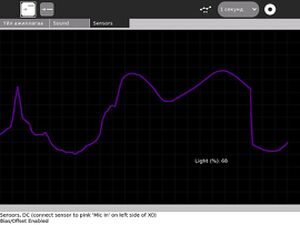 - The graph shows the last 3 to 5 seconds and gradually scrolls across the screen, so you can observe changes. For example, you can cover and uncover a light sensor and see the difference appear on the graph in real time.