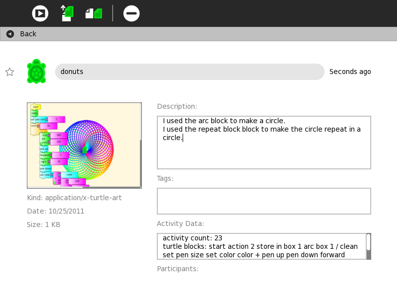 We have already included some of these recommendations in Turtle Art Activity, you can see in the picture below taken from the Journal.