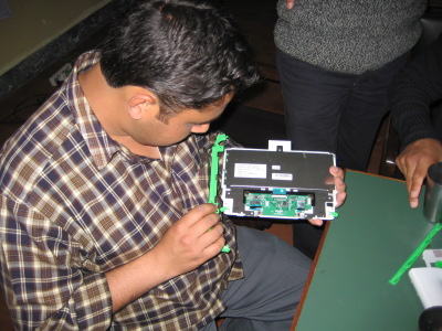 Josh Seal of Belkin International took these pictures. He is helping OLPC develop power-related products. He was very helpful to us for the week he was here in Nepal. We were very impressed with the Xoctoplug that he showed us.