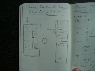 The school is roughly 30 minutes walk from the main road. This school is more accessible than Bashuki School. It is a poor school with a mix of Dalit (untouchable), Chettry, and Brahmin children. It is physically much smaller than Bashuki school and has a smaller student population. It is also much more secure location. There is a barbed wire fence encircling school, this made us worry a little less about the risk of theft of power equipment and the School Server.