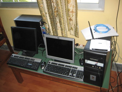 The owner of this house has generously agreed to allow us to place a point-to-point antenna in his home. We will likely place it in the high window, which is in line of sight with our multipoint antenna located at the Department of Education, 10 km east of here. We will place an omni-directional antenna on the side of the roof facing the school. The Omnidirectional antenna has a range of 12 km in optimal conditions. We have yet to determine if conditions are “optimal” at this location. We plan for the School Server and XO’s to connect to the Internet and each other using the access point we will connect to the omni-directional antenna.