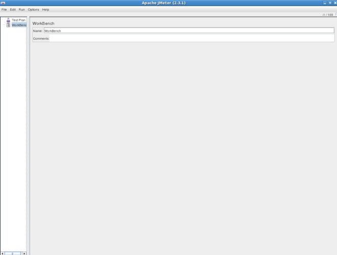 So lets take a look at some of the thing we can do with JMeter. After the installation of JMeter, run it under a Linux system with /path to your jmeter/bin/ ./jmeter A JMeter window will open, which looks something like this: