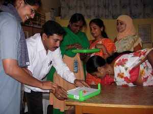 9th September,2008 :- OLPC India started its Bangalore program with a small group of teachers sitting around a table in the Principal's office at Aradhna School, discussing their idea of effective and constructive learning. At that time the school teachers believed in ideas such as practical learning, learning by Audio-Visual Aids and Experiments, co-relating textual concepts to real life could prove effective for learning. They used to haves period of 40 minutes each and it was difficult at times to adopt different methods of learning keeping in mind that they had to complete syllabus on time.