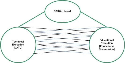 The coordination and teamwork of all those institutions is headed by the CEIBAL board. The board has representatives of each of the entities involved. They meet on a weekly basis to look into problems and define steps to be taken. CEIBAL can be seen as two sections: LATU and the Educational Commission. LATU looks after the logistics and the technical execution, while the Education Commission –comprised of MEC, AGESIC, ANEP-CODICEN, ANII, and ANTEL– does education. The interaction between these two sections is outstanding; they coordinate every process in such a harmonic way that the seams are barely noticed, though they are strongly interdependent.
