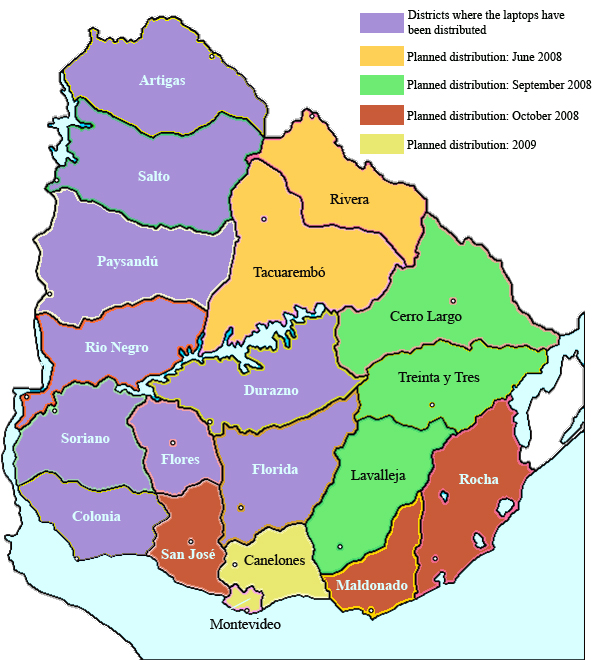 | July 2008 | Treinta y Tres,Cerro Largo, Lavalleja, Montevideo Pilots | Rivera, Tacuarembó | Artigas, Soriano | Wiki-Forum eToys |