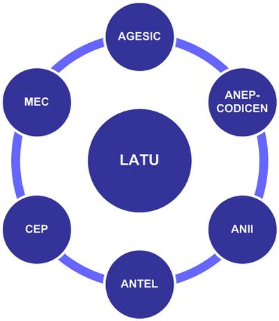 The Presidency (not illustrated) and LATU coordinate the CEIBAL Plan. LATU relies on the participation and co-direction of MEC, CODICEN, CEP, ANTEL, AGESIC, and ANII. The volunteers are not included in Illustration 1. They, however, have become a relevant civil initiative that provides support to all the stages of CEIBAL, in all the country.