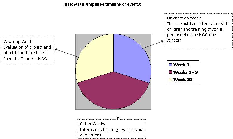 We would handover our project to the Save the poor international Ngo at the end of August. The NGO has assured us of their continued involvement in this life enriching project. Computer clubs, headed by personnel of the NGO whom we would have already trained, would be the medium through which the project would be sustained. The clubs would be formed in each of the four schools and would meet weekly on days assigned for school club activities. The clubs from the different schools would meet monthly so as to enable the children to share and exchange ideas, thus giving them a more fulfilling experience. At least two team members with family ties in the Eastern Region would visit the schools during college break to check up on the children and their laptops.