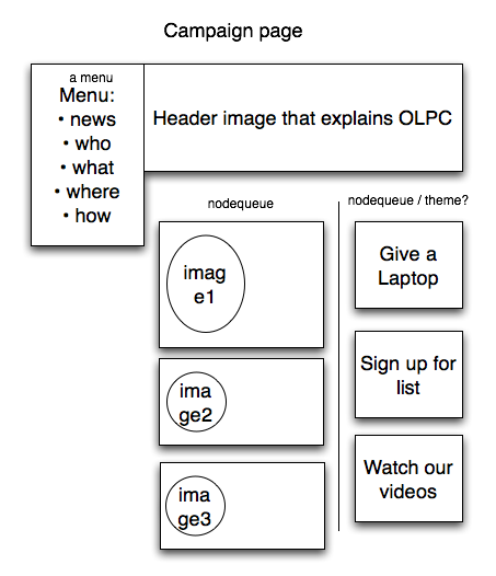 One.l.o is a site to provide a first level of interaction for advocacy of olpc as a global concept, and how to get involved with OLPC as an organization. The site is fairly simple, with two basic flows of information (blog-page, and campaign-page)