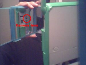 Mike Lee made a clip-on sports viewfinder made of LOGO bricks. OLPC XO Clip-on sports viewfinder made of LEGO bricks and Carrizzi's riff