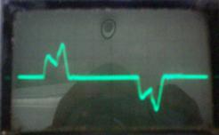 Charger input waveforms, 0.2A/square, screen edges and centre are the input voltage zero crossings