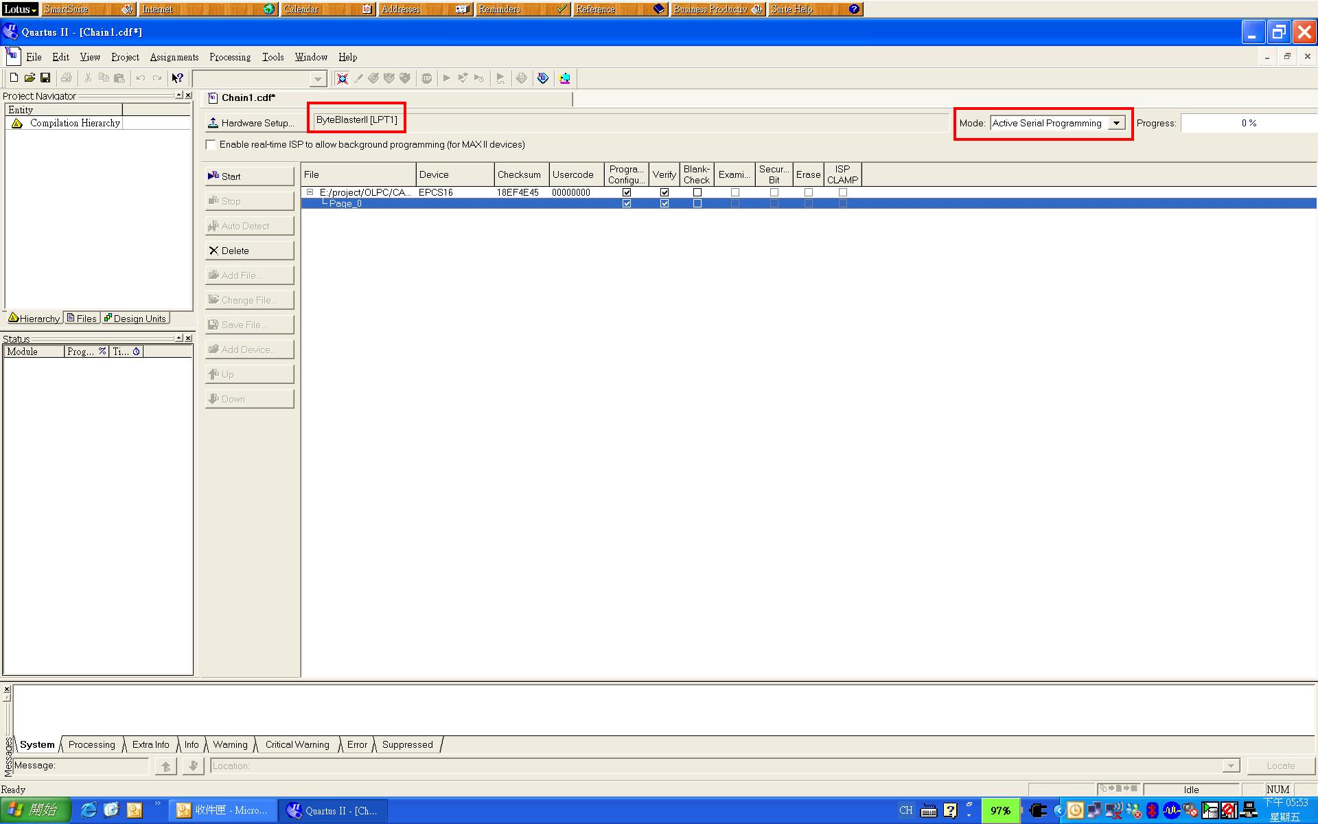 Choose Mode: Active Serial Programming