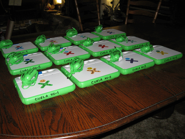 Los Angeles has its first XO lending library up and running! Thanks to the generosity of Aldo Willis and M.W. Services, Inc, CUELA (Computer Using Educators of Los Angeles) received 12 XOs in the spring of 2009. They have all been reflashed to the latest software, inventoried, marked, and checked out to educator members of CUELA. The machines will all be returned in time for hands-on workshops at SCaLE 8x and the 2010 CUE Conference in Palm Springs, CA MARCH 4-6. After that they will again be checked out to individual teachers. If you are a member of CUE and are interested in checking out a machine at the end of the March conference, contact caryl@laptop.org.