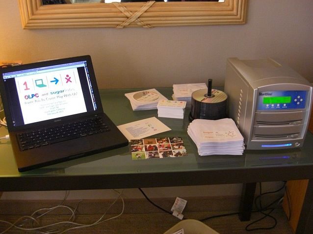 We had many visitors to our booth where we handed out over 60 copies of the Sugar Creation Kit DVD to interested developers and photo cards with useful links for OLPC and Sugar Labs information on the back to others.