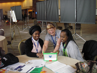 Set up in CUELA booth. Very popular booth! These students and their instructors are from Junior ROTC.