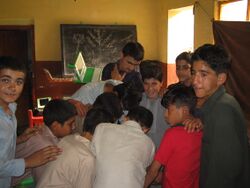 Atlas public school is located in the Rawalpindi district near Pir Wadhai (Pakistan). Atlas school located in very populated area and to reach there we passed through a busy road. Childrens living there belongs to poor families. Education has become an important factor for the development of their children. Total numbers of students are 150 from grade 1 to grade 6 and their timing is from 2.00 -5.00 PM.