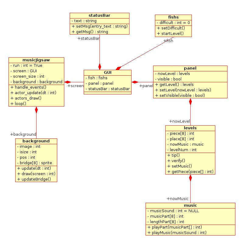 Para uma melhor organização do projeto foi elaborado um Diagrama de Classes que visa ser atualizado no processo de desenvolvimento da aplicação. Uma explicação mais detalhada do Diagrama se encontra em: Quebra-Cabeça Musical - Diagrama de Classes.