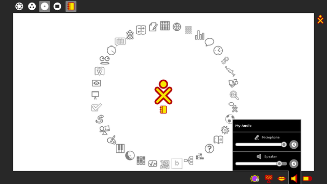 The default desktop is Unity. To switch to Sugar, log out of the Unity desktop, and then log in with the Sugar desktop selected. The desktop choice icon is highlighted below;