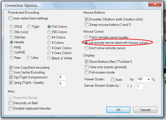 • 'Screen resolution : The vnc server dies when the resolution is changed. You will have to restart the server and the client if the screen orientation is changed.
