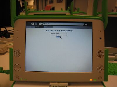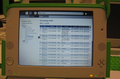 1. A modem/GSM AT compliant mobile phone is connected with the School server. It hosts a SMS Gateway which can be accessed by XO through web browser. SMS messages can be received at the school server, but I am still working on forwarding them to particular XO.