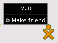 Hovering over an XO icon creates a pop-up window with the name of the person associated with that icon and a menu that can be used to add this person to your Friend View as a friend. Move the cursor to and select "Make a Friend" to add this person.
