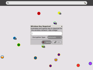 Quando sono disponibili più connessioni wireless, vai sulla Neighborhood View (Visualizzazione vicinato) e muovi il mouse sui cerchi finchè non trovi una connessione a cui agganciarti (e su cui hai la password o la chiave di accesso necessaria per connetterti). Fai click sul cerchio che rappresenta la rete wireless a cui vuoi connetterti. Saprai di essere connesso quando apparirà sul menu a tendina troverai la voce "Disconnetti".