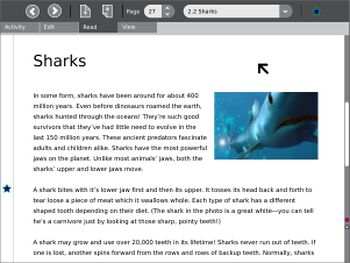 Il tuo laptop XO contiene una libreria che offre molti materiali interessanti in molte lingue. Questi libri sono spesso chiamati ebooks, ovvero libri elettronici, e files PDF (Portable Document Format). Potresti ruotare lo schermo del laptop in modo da leggere meglio gli ebooks.