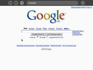 It has a simple interface. By default it has one toolbar across the top, with back, forward, and reload buttons, followed by a box with the page title or URL, and a "+" button which adds an extra browser tab. If you click the "+" button then it adds a new tab, and a new toolbar appears on the left side of the screen which displays all the tabs. I couldn't work out how to close tabs.