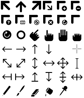 - Save it as .xbm (eg. black pointer > white border > black border > transparency)