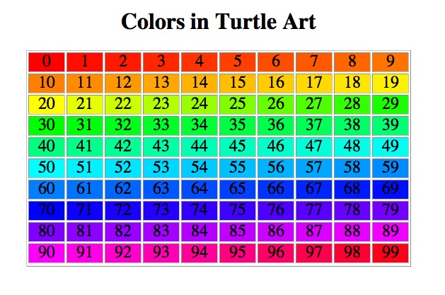 - Set Color(number) – set color of the line drawn by the turtle