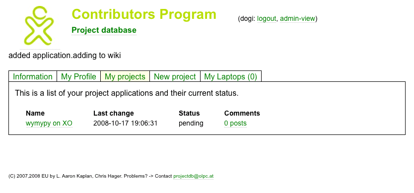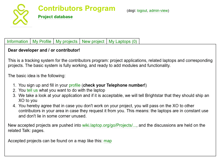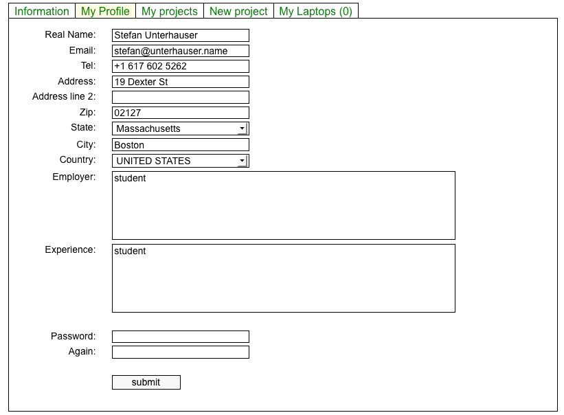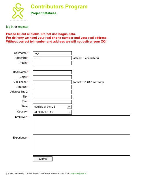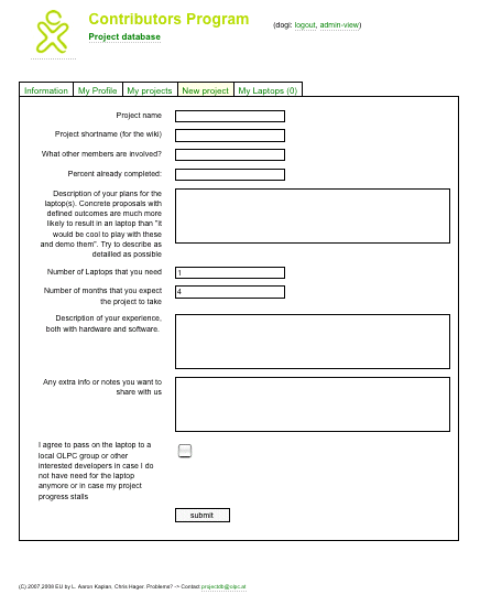 Form for new projects: